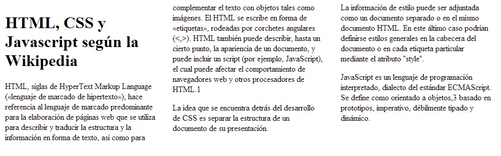 <h1> HTML, CSS y Javascript según la Wikipedia </h1>